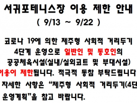 서귀포테니스장 이용 제한 안내( 9/13 ~ 9/22 )