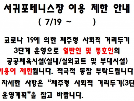 서귀포테니스장 이용 제한 안내( 7/19~ )